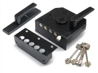 Некоторые из накладных замков можно использовать и в уличных условиях для защиты калиток, ворот ограждений, гаражей, хозяйственных блоков и т.д. Детали таких замков должны быть изготовлены из устойчивых к коррозии металлов или покрыты антикоррозийным материалом.